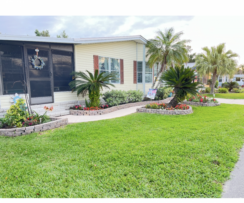 The home's landscaping is so pretty and inviting, reflecting the care and attention given to every detail. A long driveway and a large shed provide ample space for parking and storage. You have the convenience of two entry points: one under the carport and a second through the side lanai, providing easy access regardless of the weather.