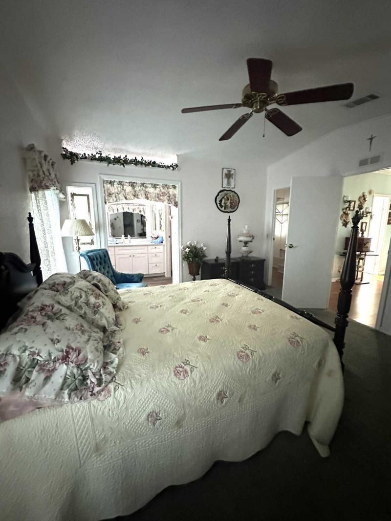 This home immediately catches your eye with its exceptional cleanliness, highlighted by crisp white decorative fencing and beautifully manicured landscaping. The large double carport and driveway provide ample parking. Enjoy the Florida weather from the cozy outside sitting area out front or use the back patio for grilling. Two large, beautiful palm trees adorn the very pretty backyard, creating a tropical backdrop.