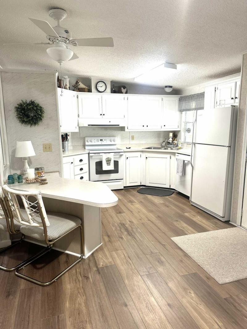 Step inside to a nice open concept flowing through the dining area and living room. The dining room features a convenient built-in hutch. The kitchen boasts a unique curved design with a breakfast bar and all white matching appliances. This home is FULLY FURNISHED, and the quality of the furniture is amazing-truly move-in ready!