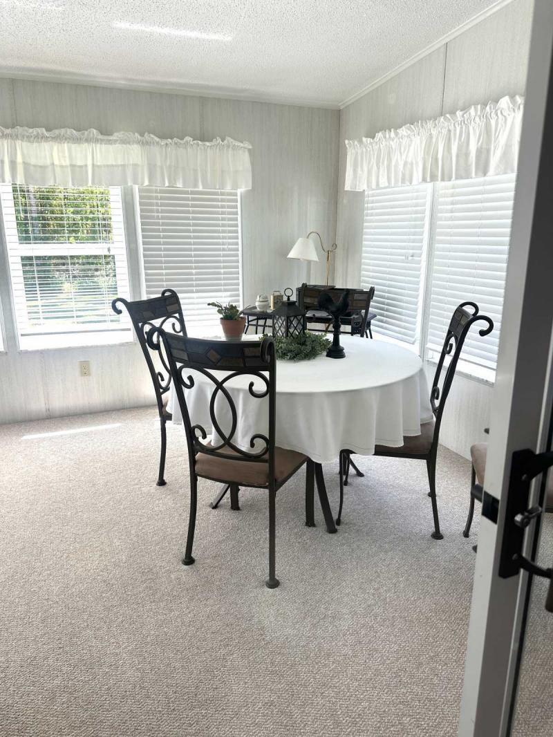 The large All Seasons Room in the back features double-pane windows and offers an amazing, private view of the woods. It leads out to a patio, perfect for enjoying the serene outdoor environment.