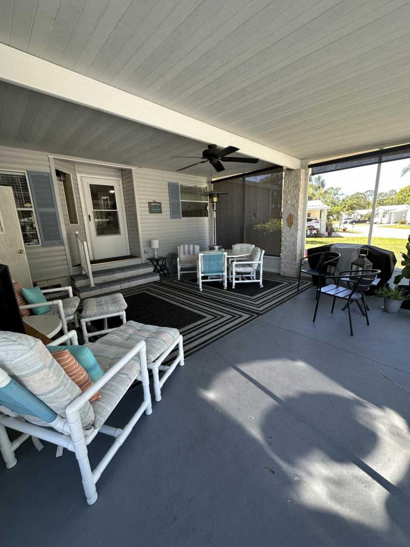 The front carport has a handy screen room across it, creating a nice, bug-free sitting area (with screen sliders that can be removed for flexibility). A nice shed currently houses the laundry but the hookups are still available to be easily moved back inside if desired. For effortless travel, a private golf cart driveway is a great addition. Golf cart is included! The pretty landscaping is enhanced by new concrete edging and an animal barrier installed around the home.