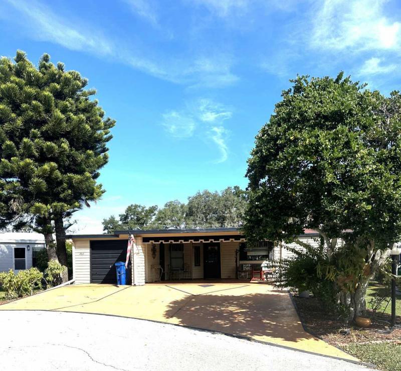 The home boasts a double carport and driveway with pretty pillars, a dedicated private driveway for your golf cart, and a shed for storage. You'll appreciate the ease of entry, as there are no steps going into the home.