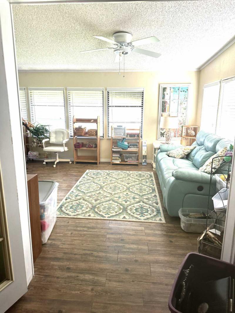 A wonderful addition to this home is the spacious Florida Room, which is open to the main living area via French doors and shares the central A/C, ensuring year-round comfort. It features numerous windows, offering pleasant views.