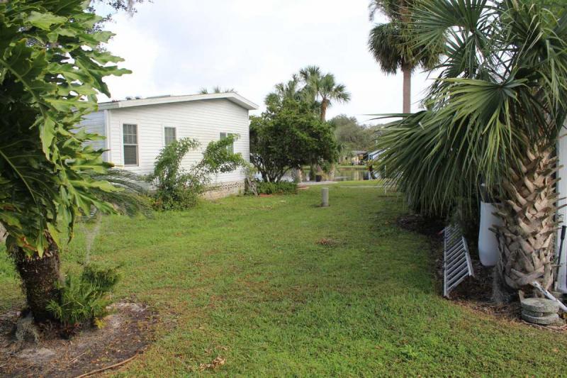 Upon entry, a spacious lanai welcomes you, with a washer and dryer tucked neatly in an attached shed. The patio out back offers a peaceful setting with a peek of the nearby pond.