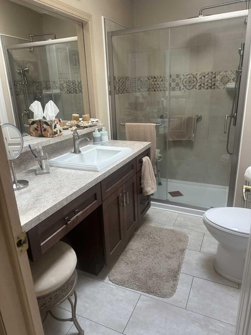 Down the hallway, you'll find a private laundry room. Both bedrooms are large and beautifully decorated, featuring large walk-in closets. Both bathrooms have been fully remodeled with quality craftsmanship. The primary bath offers a nice-sized tub, a separate linen closet, and a nice shower.