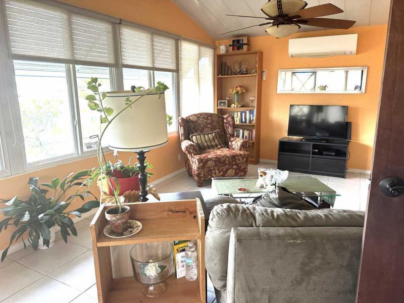 Double Entry: Entered via elegant double French doors, this 300 sq. ft. space offers amazing views and an outside door with a ramp leading to the spacious yard.
