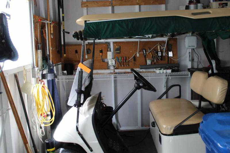 Extras: Oversized shed with shelving and a golf cart included with new batteries