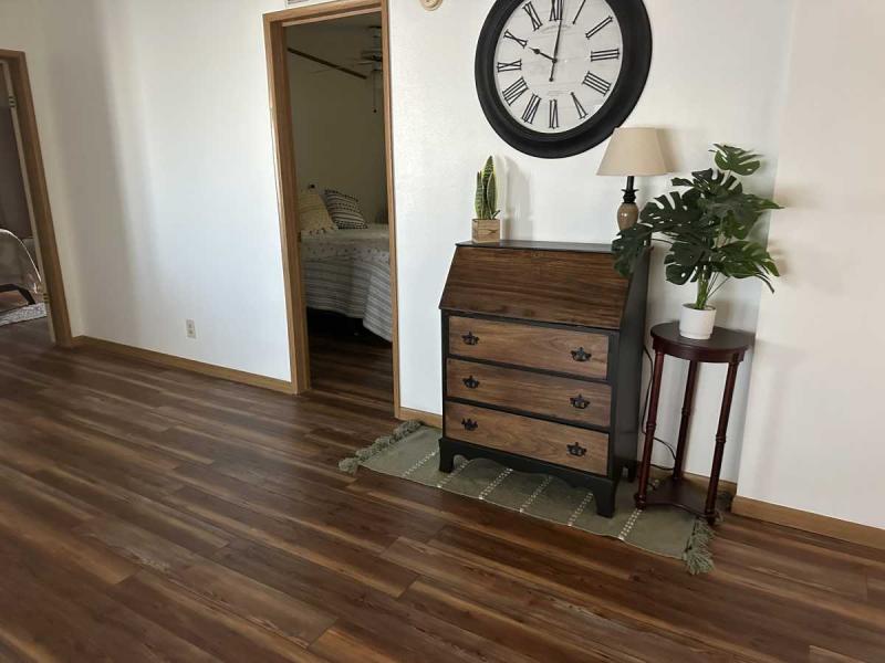 Inside, you'll find all-new double-pane windows flooding the home with natural light. Step through one of the two entrances into the front of the home, and you'll discover a fully furnished interior adorned with genuine leather furniture, valued at $6,000. The living room features a built-in entertainment center, while the dining room boasts a built-in hutch. Additionally, there's a den/family room for added versatility.