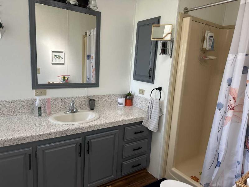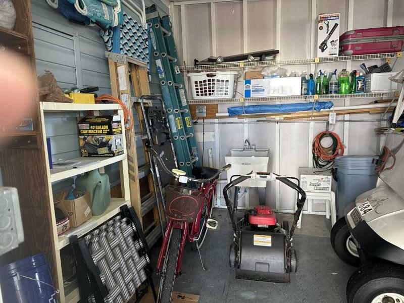 Explore this stunning, fully updated 2-bedroom corner lot home, offered turn-key for your convenience. As you arrive, you'll be greeted by a double carport and driveway with professional paint and printing, complemented by block pillars and a private golf cart driveway. The extra-large shed features an electric garage door opener.